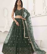 Dark Green embroidered net semi stitched lehenga Choli Wedding & Party Wear Chaniya Choli For Women