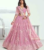 Pink Net Fabric Lehenga With Sequins And Thread Embroidery Work