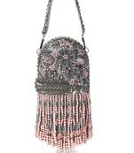 Azmat Grey Suede Embellished Capsule Bag is crafted with stones, cutdana, zari and lustrous beads in different shades of grey and pink, delicate asymmetrical handmade tassels at the bottom and a beaded handle. Both the inside and the outer covering is of suede material. The stitching is impeccable, and the unique capsule shape has a spacious interior, with room for your essentials, including your phone, wallet, keys, and makeup. The secure clasp closure ensures your belongings stay safe. Product colour may slightly vary due to photographic lighting sources or your monitor settings