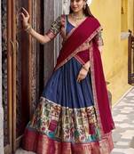 Navyblue Poly Chanderi With Kalamkari Printed With Zari Weaving Work South Style Lehenga Choli