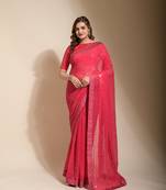 Pink Sequin Embroidery Soft Georgette Saree With Blouse