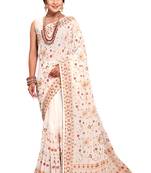 Cream Heavy Kashmiri Resham Embroidery Georgette Saree