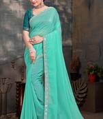 Designer Sea Green Resham Zarkan Embroidery Work Silk Saree