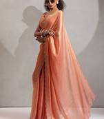 Peach Handwork Zarkan Border Work Silk Party Wear Saree