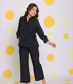Black Collared Shirt And Pant Two Piece Set Summer Relaxed Linen Co Ord Set