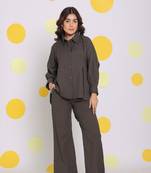 Grey Buttoned Shirt And Pant Two Piece Set Relaxed Linen Co Ord Set