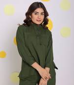 • Product Id : 4485687 • Package Details : 1 Shirt • Type : Women Shirts • Work : Plain • Type : Block Print • Sleeve : Quarter Sleeve • Occasion : Formal • Color : Green • Stitching : Stitched • Fabric : Linen Blend • Style : Fit Flare • Length : Regular • Collar : Mandarin Collar • Length : Regular Payments [+]