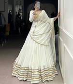 Off White Rayon Lehenga Choli With Golden Lace Full Stitch