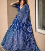 • Style : Circular Lehenga • Fabric : Silk • Work : Printed • Color : Blue Blouse Details