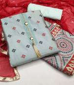 Kimisha Presents Beautifully Designed & Latest In Trends Women's Ethnic Banarasi Jacquard Unstitched Straight Suit. It Is Available In Free Size And Can Be Stitched To Suit Your Measurements. It Is Alterable Up To Chest Size Of 42, Comes With Naznnen Dupatta and Plain Santoon Unstitched Bottom. This Dress Would Add Elegance To Your Look. Wear It At Any Occasion By Pairing It With Matching Ethnic Jewelary Like Ethnic Jumkas And Ethnic Footwear Like Mojaris and Juties.