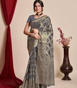 Grey Organza Faux Kanjeevaram Woven Saree Without Blouse