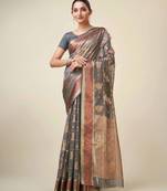 Grey Organza Faux Kanjeevaram Woven Saree With Unstitched Blouse Piece