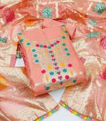 Peach Organza Banarasi Dress Material With Inner Unstitched