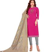• Product Id : 3080428 • Package Details : 1 Top / 1 Bottom / 1 Dupatta • Type : Churidar Suits • Region : Other • Occasion : Festive • Type : Mirror Work • Look : Traditional • Sleeve : Quarter Sleeve • Neck Style : Boat Neck • Stitching : Unstitched • Fabric : Cotton • Color : Pink • Work : Mirror • Max Bustsize Fit : 42 Stitching [+]