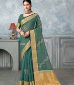 Rama Tissue Silk Blend Zari Work Saree With Unstitched Blouse Piece