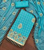 Blue Chanderi Modal Handwork Unstitched Dress Material