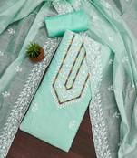 • Product Id : 4550309 • Package Details : 1 Top / 1 Bottom /1 Dupatta • Type : Dress Materials • Region : Other • Work : Embroidered • Type : Thread Work • Look : Traditional • Sleeve : Quarter Sleeve • Stitching : Unstitched • Fabric : Rayon • Color : Green Stitching [+]