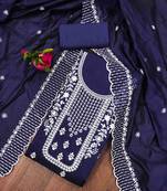 Navy Blue Chanderi Cotton Embroidered Unstitched Dress Material
