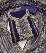 Navy Blue Georgette Jarkan Work Unstitched Dress Material