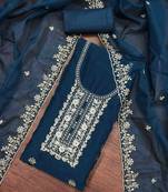Navy Blue Viscose Organza Handwork Unstitched Dress Material