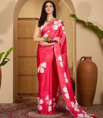 Pink Satin Georgette Printed Saree With Unstitched Blouse