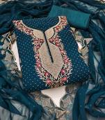 Women's Teal Embroidered Dress Material Unstitched