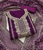 Wine Georgette Jarkan Work Unstitched Dress Material