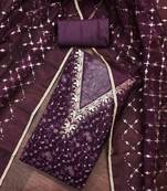 Wine Viscose Organza Handwork Unstitched Dress Material