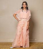 Chic Peach Ensemble With Beaded Cape And Ruffled Palazzo Pants