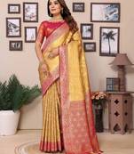 Light Mustard Banarasi Tissue Sare Meenkari Woven Border And Rich Pallu With Blouse