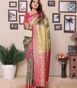 Parrot Green Banarasi Tissue Sare Meenkari Woven Border And Rich Pallu With Blouse