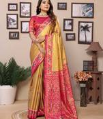 Yellow Banarasi Tissue Silk Saree Patola Woven Border And Contrast Woven Classic Pallu With Blouse