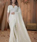 Light Yellow Sequin Embroidered Border Georgette Wedding Saree With Blouse Piece