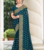 • Border : Embroidered Border • Fabric Of : Georgette • Color : Teal • Color : Teal Blouse Details