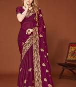 Wine Sequin Embroidered Border Fendy Two Tone Silk Saree Sari