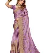Women's Purple Zari Embroidered Satin Saree With Unstitch Blouse Piece