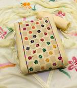 • Product Id : 4147681 • Package Details : 1 Top/1 Bottom/1 Dupatta • Type : Dress Materials • Region : Other • Work : Embroidered • Look : Traditional • Sleeve : Half Sleeve • Neck Style : Round Neck • Stitching : Unstitched • Fabric : Cotton • Color : Beige Stitching [+]