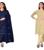 • Product Id : 4404857 • Package Details : 2 Top/2 Bottom/2 Dupatta • Type : Dress Materials • Type : Thread Work • Look : Designer • Sleeve : Half Sleeve • Neck Style : Round Neck • Stitching : Unstitched • Fabric : Organza • Color : Beige,Blue • Work : Thread Embroidery Stitching [+]