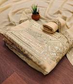 Manvaa Women's Beige Unstitched Embroidered Georgette Dressaterial