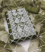 Manvaa Women's Olive Green Unstitched Embroidered Organza Dressaterial