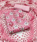 Manvaa Women's Pink Unstitched Designer Printed Work Printed Dupatta And Bottom Cotton Dress Material