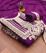 Manvaa Women's Purple Unstitched Embroidered Georgette Dressaterial
