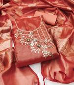 Women'S Rust Unstitched Handwork Pure Viscose Dress Material Having Rust Color Unstitched Bottom Of Dull Santoon Fabric And Rust Color Dupatta Of Pure Banarasi Viscose Material With Charming Rust Colour In Pure Viscose Dull Santoon Pure Banarasi Viscose Fabric With Work Of Heavy Handwork Neck And Fancy Border With Designer Weaving Dupatta|| Images Are For The Referance Purpose Only, Color Of The Actual Product May Little Vary From The Image Due To Screen Resolution