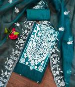 Women'S Teal Unstitched Heavy Thread Embrodiery Organza Dress Material Having Teal Color Unstitched Bottom Of Santoon Fabric And Teal Color Dupatta Of Organza Material With Awesome Teal Colour In Organza Santoon Fabric With Work Of Heavy Thread Embrodiery With Stylish Neck And Border Work With Embroidered Dupatta Work|| Images Are For The Referance Purpose Only, Color Of The Actual Product May Little Vary From The Image Due To Screen Resolution