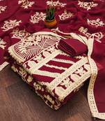 Women'S Maroon Unstitched Heavy Chain Stitched Thread Embroidery Georgette Dress Material Having Maroon Color Unstitched Bottom Of Santoon Fabric And Maroon Color Dupatta Of Georgette Material With Awesome Maroon Colour In Georgette Santoon Fabric With Work Of Heavy Chain Stitched Thread Embroidery With Embroidered Dupatta|| Images Are For The Referance Purpose Only, Color Of The Actual Product May Little Vary From The Image Due To Screen Resolution