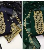 Women's Awsome Blue And Green Color Unstitched Embroidery Combo Dress Material