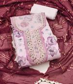 Women's Baby Pink Unstitched Position Print Embroidery Viscos Organza Dress Material
