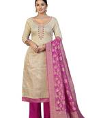 Women'S Beige Unstitched Stylish Handwork And Fancy Border With Banarasi Woven Dupatta Cotton Dress Material Having Pink Color Unstitched Bottom Of Cotton Fabric And Pink Color Dupatta Of Banarasi Jacquard Material With Beautifull Beige Colour In Cotton Banarasi Jacquard Fabric With Work Of Stylish Handwork And Fancy Border With Banarasi Woven Dupatta|| Images Are For The Referance Purpose Only, Color Of The Actual Product May Little Vary From The Image Due To Screen Resolution