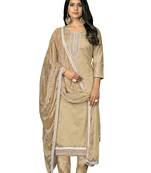 • Product Id : 4309092 • Package Details : 1 Top/1 Bottom/1 Dupatta • Type : Dress Materials • Type : Hand Embroidery • Look : Fashion • Sleeve : Quarter Sleeve • Stitching : Unstitched • Color : Beige • Fabric : Blended Cotton • Work : Hand Embroidery Stitching [+]