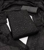 Women's Black Unstitched Sequence Work Chanderi Cotton Dress Material